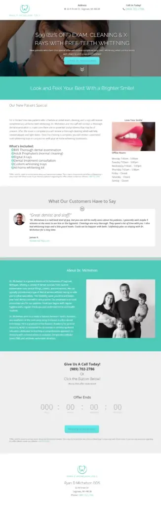 Here, you can see the landing page I built for my client in the dental field, Dr. Michelson.
